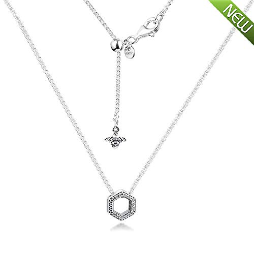PANDOCCI 2020 Primavera Scintillante a Nido d'Ape Esagonale Collier collane con Pendente per Le Donne 925 Argento Fai da Te Adatto per bracciali Pandora Originali Fascino Gioielli di Moda