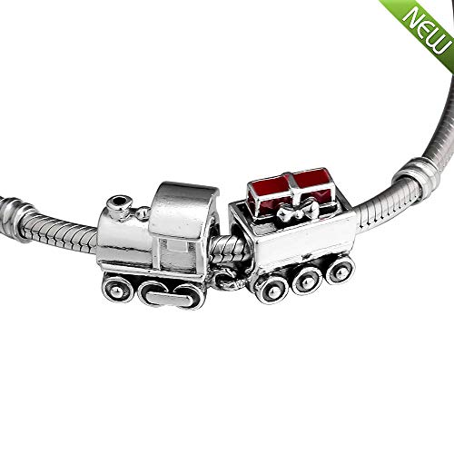 PANDOCCI 2018 Regalo di Natale Treno di Natale 925 Perline d'Argento Fai da Te Adatto per bracciali Pandora Originali Gioielli di Moda con ciondoli