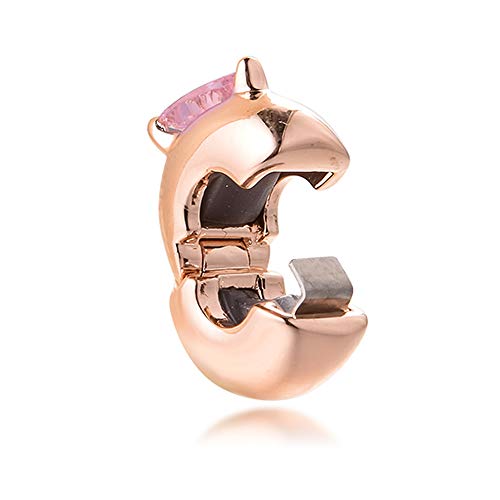 PANDOCCI 2021 Regalo di San Valentino Rotondo Solitario Clip Perlina 925 Argento Fai da Te Adatto per bracciali Pandora Originali Gioielli di Moda con ciondoli (Rosa)