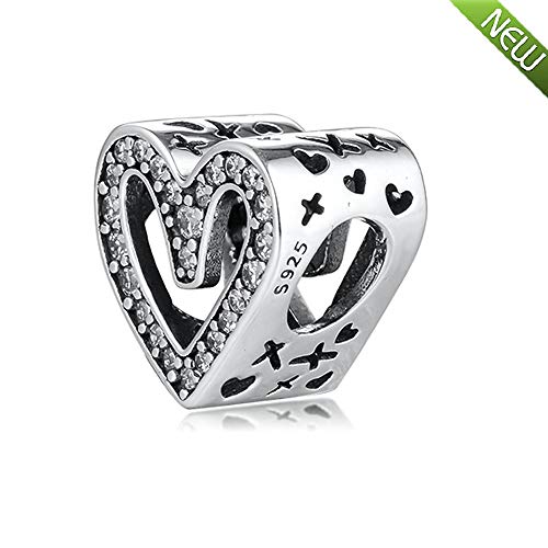 PANDOCCI 2020 Regalo di San Valentino Scintillante Cuore a Mano Libera Perlina Argento 925 Fai da Te Adatto per bracciali Pandora Originali Fascino Gioielli di Moda (Silver)
