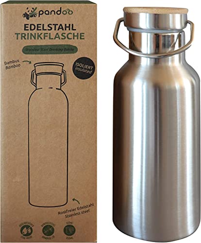 Pandoo Borraccia in acciaio inox, 750 ml, riutilizzabile, a prova di perdite con coperchio, per sport, campeggio, gite, ciclismo, con o senza isolamento (a parete singola)..