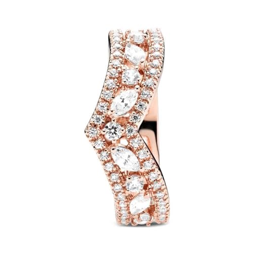 Due anelli formano un doppio nastro, tempestato di zirconi cubici trasparenti. L'anello Wishbone placcato oro rosa è perfetto per essere impilato