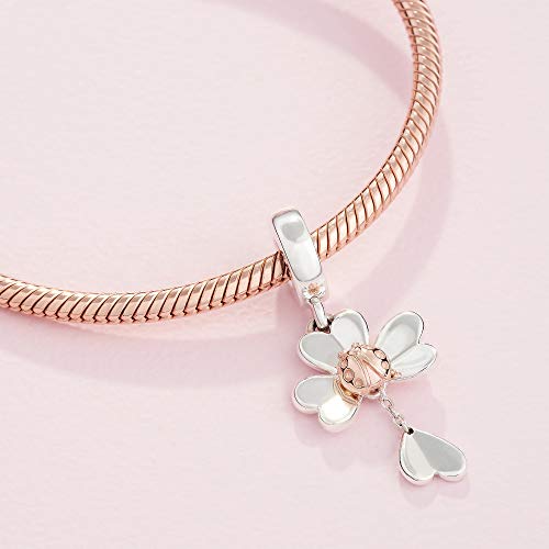 Questo ciondolo a forma di quadrifoglio e coccinella bicolore è rifinito a mano in argento Sterling e in lega di metallo placcato oro rosa 14 carati