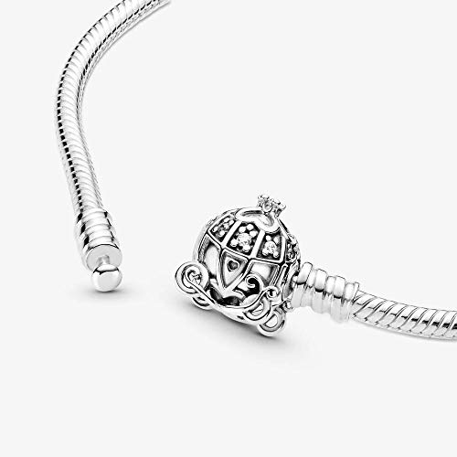 PANDORA Disney Bracciale in maglia a serpente in argento Sterling con chiusura a forma di zucca di Cenerentola con zirconi cubici trasparenti, 21