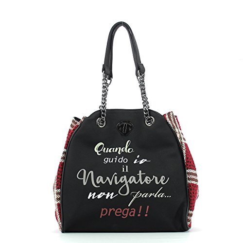 LE PANDORINE Borsa Classic Wool Navigatore, AI17DAA02090 09 nero/rosso, 37,22 cm