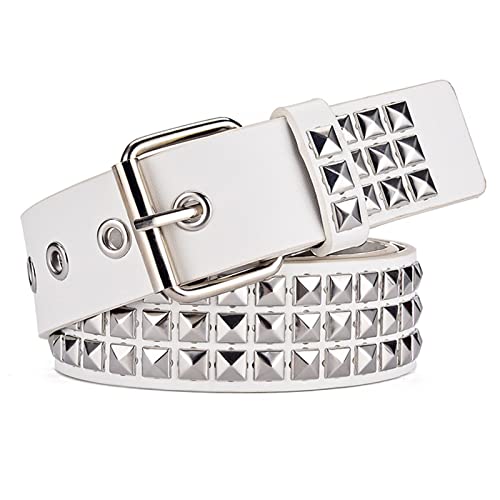 Panegy Cintura da Donna di Pelle con Borchie Cinghia Piramide in Metallo Cinture Regolabile Vintage per Jeans Pantaloni Vestiti Bianco