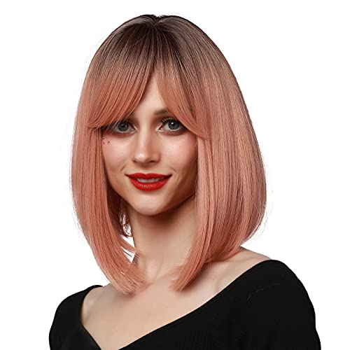 Panegy Corta Parrucca Donna Rosa Cosplay Parrucche Capelli Naturali Sintetiche Wigs Dritta Bob Frangia Moda Adatta per Halloween Festa
