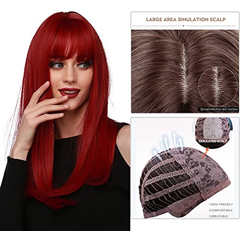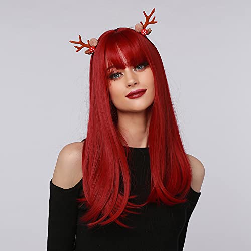 Panegy Parrucca Rossa Lunga Donna Parrucche Sintetiche Dritte Capelli Naturali Wigs Ragazze con Frangia per Cosplay Carnevale Costume di Festa