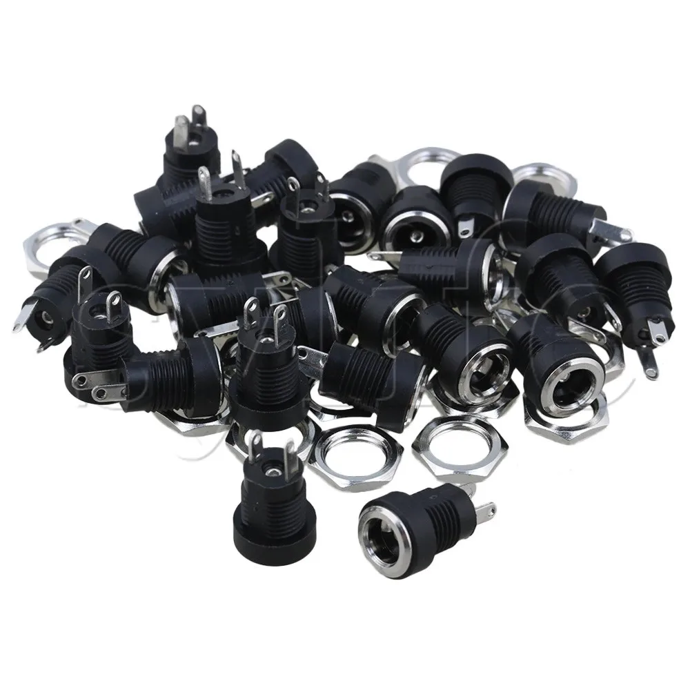 Panel DC Power Supply Jack Socket 5.5mm x 2.1mm Opening Hole 8mm Pack of 25