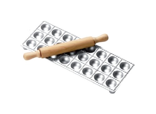 Panetta Casalinghin Alluminio, Stampo per Ravioli con mattarello in Legno, Argento, Piccole, Pezzi