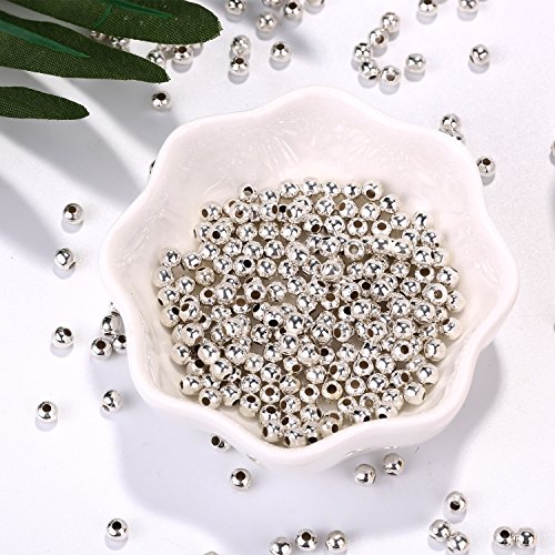 Pangda 100 Pacchi 4 mm Distanziatori in Metallo Placcate Perline Tonde Metallo Piccole Perline Lisce per Creazione di Collane, Bracciali e Gioielli (Argento)