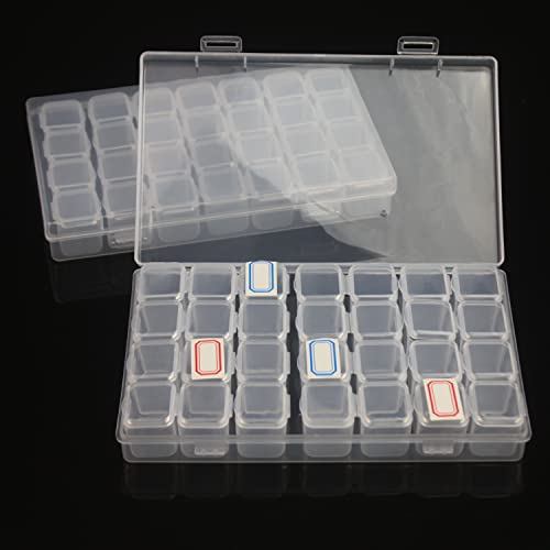 Pangmao - 2 confezioni di organizer con 28 celle, scatole portaoggetti in plastica trasparente, organizer per perline, pittura