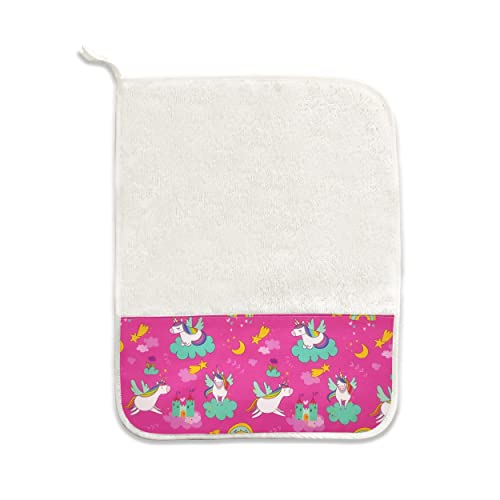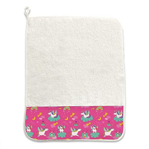 Panini Tessuti,Kit Set Asilo/Scuola Materna Unicorni e Arcobaleni per la pappa/merenda. Composto da: Sacchetto Cambio-2 Bavaglini-Porta Bavaglino-Asciugamano Grande e Piccolo -2 Tovaglioli-Tovaglietta
