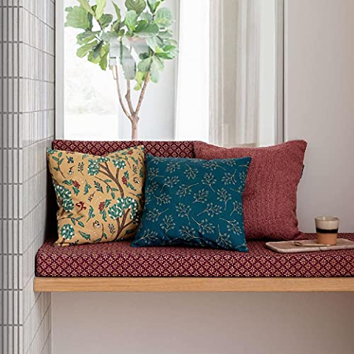 Panini Tessuti, Tessuto Panama Misto Cotone Rami Sfondo Petrolio - Venduto al Mezzo Metro, Larghezza Fissa 140 CM;