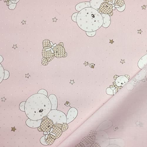 Panini Tessuti, Tessuto Piquet Orsetti Lurex in Puro Cotone, Venduto al Mezzo Metro, 1 qtà=50 cm;