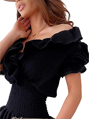 PanLidapan Vestito Corto Estate con Scollo a V e Maniche Corte Abito Vita AltaAbito Donna Elegante da Serimonia Mini Abito Donna (Nero, X-L)