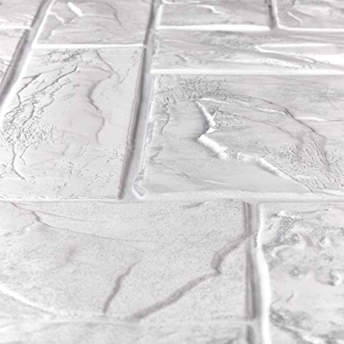 Pannelli murali 3D decorativi (20 pezzi), effetto mattoni in pietra spaccata di colore bianco, 9,63 m², in PVC (cloruro di polivinile)