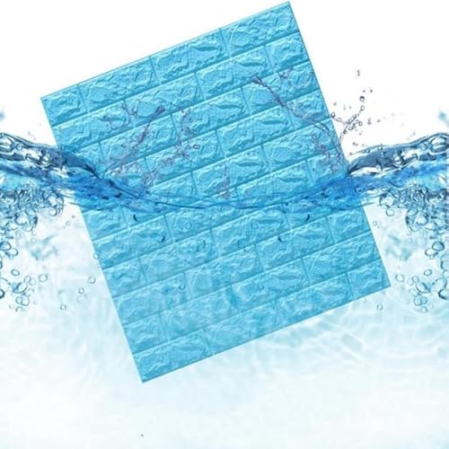 Pannelli da parete 3D, autoadesivi, adesivi murali, mattone,impermeabile, in PVC, 77 cm x 70 cm X 2MM (10, azzurro)