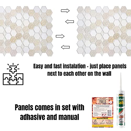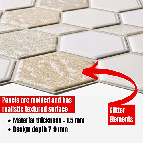 Pannelli da parete 3D a nido d'ape, effetto piastrelle esagonali, con glitter, set di 4 pannelli - 2,48 mq | 26,84 m² - per interni cucina e bagno, rivestimento in plastica PVC, pannelli di