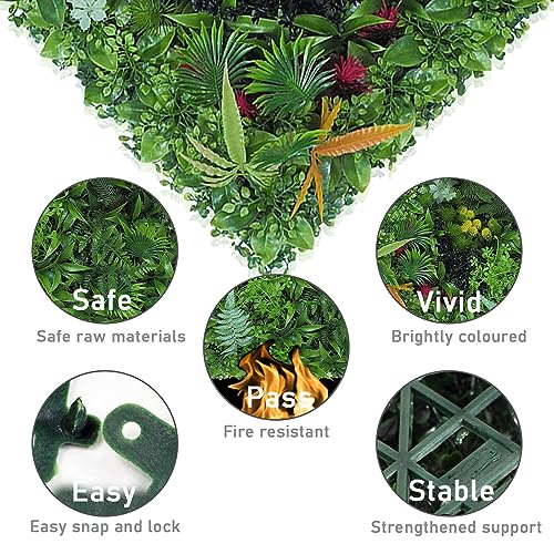 【Materiale PE di alta qualità】 I nostri pannelli di recinzione artificiale sono realizzati in polietilene ad alta densità. Durevole e leggero, resistente ai raggi UV, agli agenti atmosferici, a bassa manutenzione, morbido al tatto. Non si sbiadiranno, anche in condizioni esterne difficili. Nessuna manutenzione, rifinitura o manutenzione, il muro di fondale artificiale manterrà il suo aspetto fresco tutto l'anno.