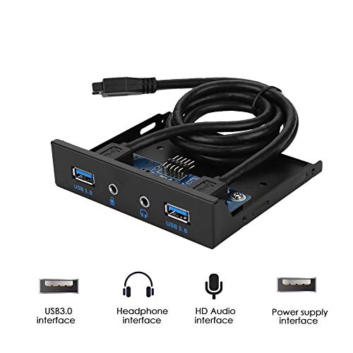 Pannello Anteriore USB 3.0, ASHATA Hub Super Speed USB 3.0 a 2 Porte e Pannello Anteriore 3,5 Pollici con Porta Audio/Microfono HD, Pannello Frontale Multifunzione USB 3.0 per unità
