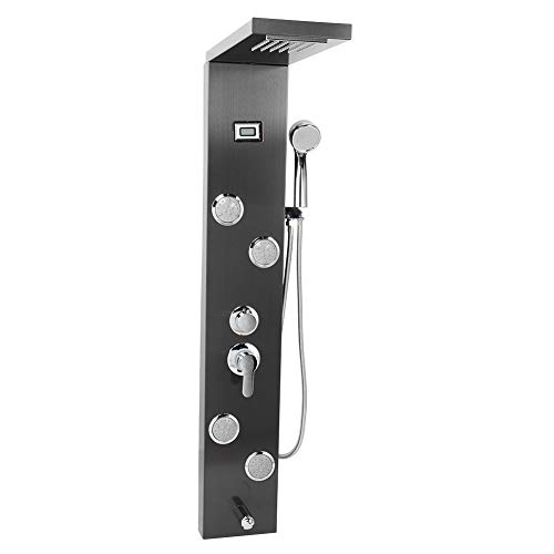Pannello Colonna Doccia Idromassaggio Acciaio Inox con Soffione doccia a cascata,Ugello dell'acqua,Soffione doccia multifunzionale a tre fissi e Testa di spruzzo,115 x 20cm
