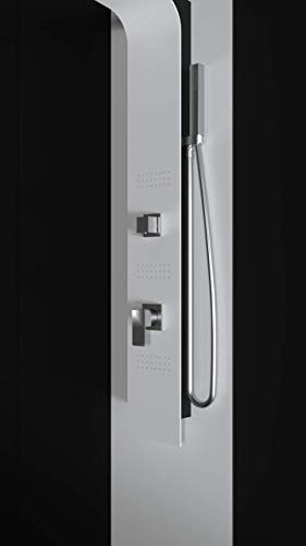 Pannello doccia idromassaggio 3 vie alluminio bicolore bianco e nero opaco verniciato a polvere con doccino, presa acqua, flessibile, soffione e getti idromassaggio