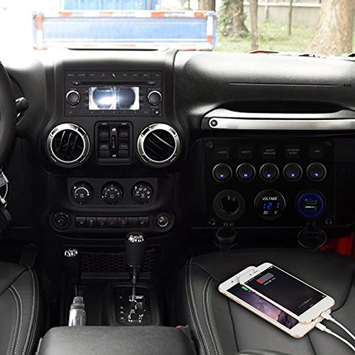 Pannello Interruttori per Auto Barca 5 Gang Interruttore a Levetta ON-OFF 2USB Presa Voltmetro a LED 12V 24V Presa di Corrente per Marine RV Truck Camper Veicoli(Blu).