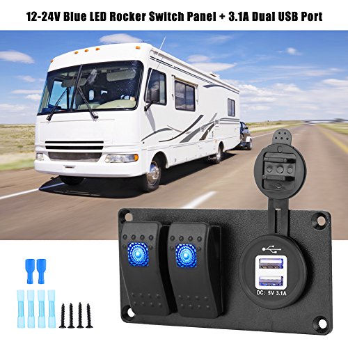 Pannello interruttori a bilanciere 12-24V 2 LED blu Pannello interruttore a barra con porta USB 3.1A Design professionale impermeabile