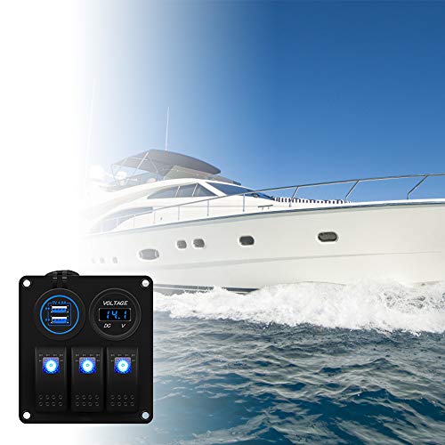 Pannello Interruttori A Bilanciere Per Barca Con Caricatore USB A 2 Porte Pannello Di Controllo Multifunzionale A 3 Luci A LED Per Auto, Navi, Yacht (Blue)