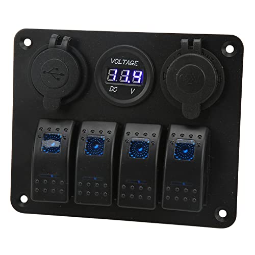 Pannello Interruttori a Levetta, Pannello Interruttori a Bilanciere a 4 Bande con Presa Accendisigari USB Attiva/disattiva Pannello Interruttori Combinato per Camper Barca Yacht