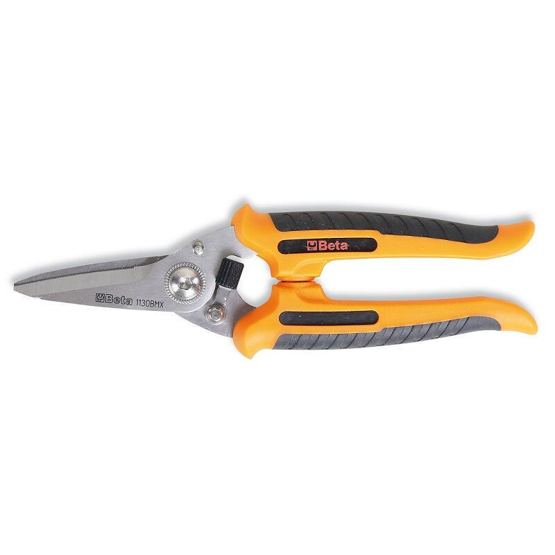 Dati tecnici Produttore: Beta Lunghezza: 185 mm Tipologia: Multifunzione lama dritta + microdenti Forbici multifunzionali lama dritta + microdenti Meccanismo a molla Manico con lame aggiuntive per spelare fili Lama dritta con microdenti Acciaio inox** Foto illustrative