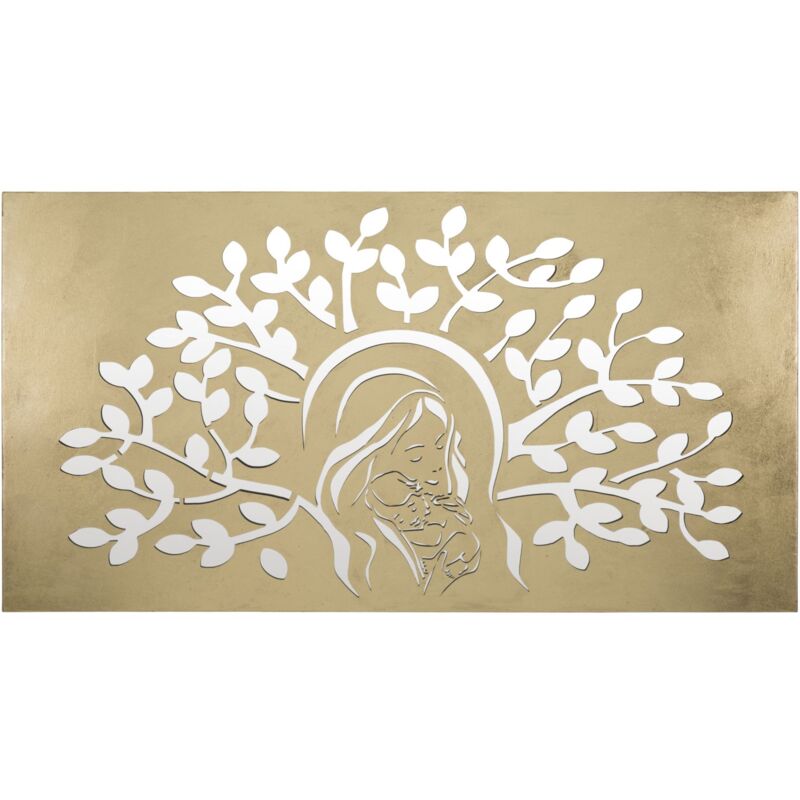 Pannello Maternity Oro 120x2x64 cm in Ferro MDF e Specchio Oro Pannello decorativo rettangolare 3D in metallo dorato con specchio. Il particolare intaglio crea il disegno della natività. Un tocco raffinato per ogni ambiente.