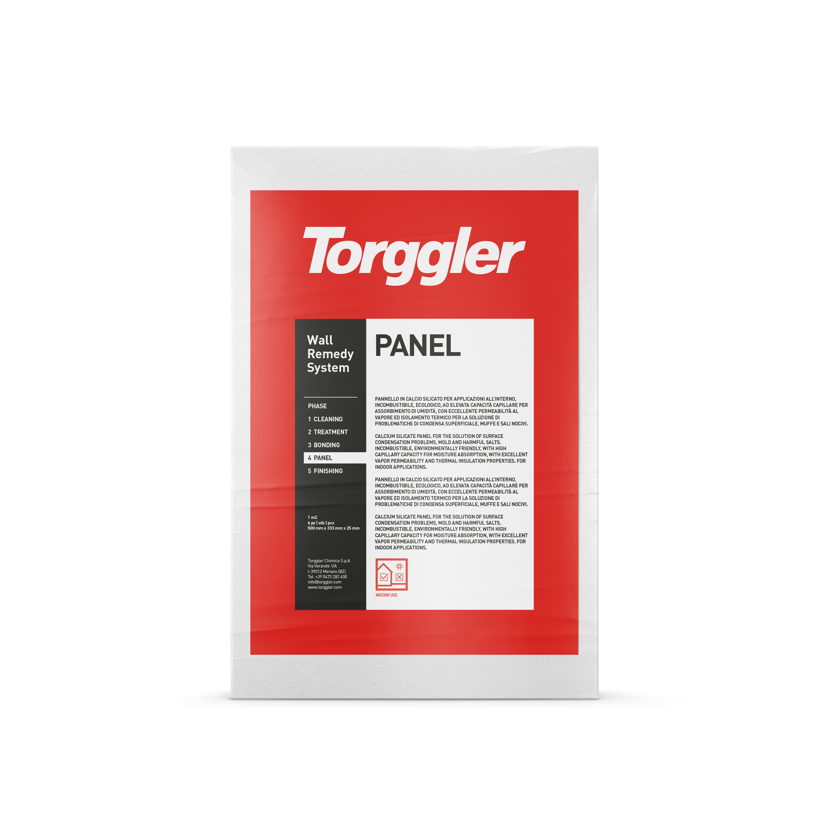 Pannello in calcio silicato per applicazioni all'interno, incombustibile, ecologico, ad elevata capacità capillare per assorbimento di umidità, con eccellente permeabilità al vapore ed isolamento termico per la soluzione di problematiche di condensa superficiale, muffe e sali nocivi.