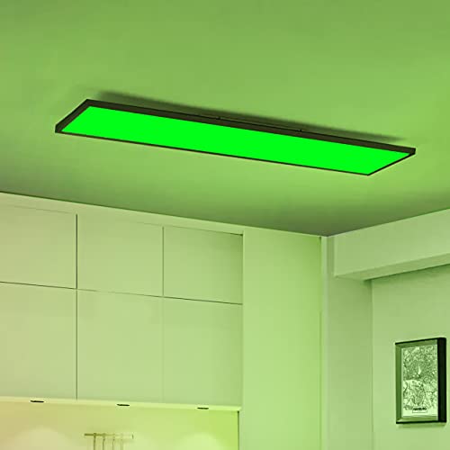 Pannello LED da soffitto 120 x 30 cm, 40 Watt, RGB cambia colore con telecomando, dimmerabile, 2700-6200 Kelvin, metallo/plastica, nero/bianco