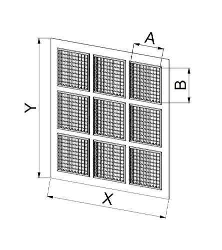 Dimensioni: A - 150 mm, B - 150 mm, X - 595 mm, Y - 595 mm.