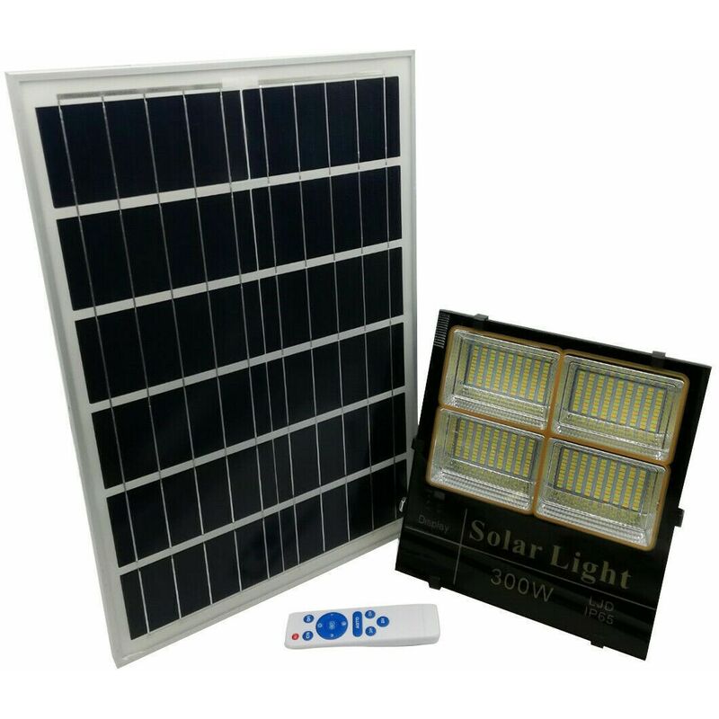 Faro con pannello solare Illuminazione: LED Numero led: 369 Potenza: 300W Tipo Led: SMD Colore luce: calda, fredda e naturale Non necessita di attacco alla corrente elettrica Telecomando IR Fissaggio faretto e pannello con staffa Grado di protezione: IP65 Dimensione faro: h 29 x l 25.5 x s 6 cm circa Dimensioni pannello: h 54 x l 35 X s 2 cm circa