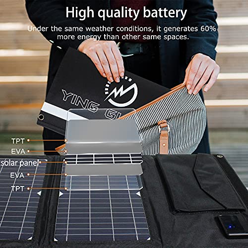 Pacchetto e garanzia: guida di benvenuto, caricatore solare pieghevole in polimero PET di resistenza industriale.Per i laptop, ti consigliamo di scegliere il prodotto più di 40W.1. Panne
