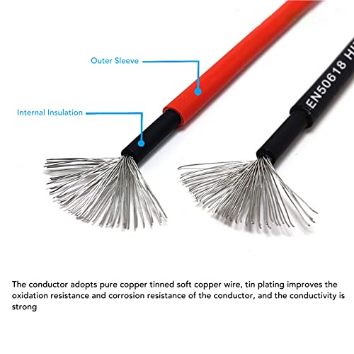 Cavo Del Pannello Solare, Cavo di Prolunga Solare, Filo Fotovoltaico a Doppio Isolamento in Rame Stagnato per Controller del Pannello Solare Barca Marine Automotive RV Outdoor(20m-6mm²)