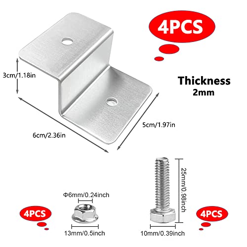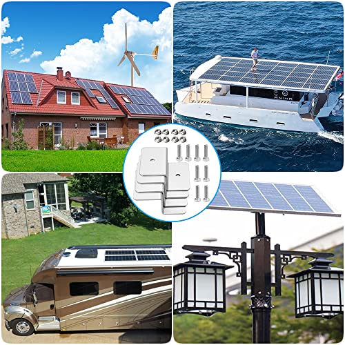 Set di Staffe: Riceverai 4 PCS Staffa in Alluminio per Pannello Solare, 8 bulloni esagonali esterni e 8 dadi flangiati, la dimensione della Staffa Z per Pannello Solare è 6 * 5 * 3 cm, che è sufficiente per installare componenti di piccola e media potenza non superiori a 100 W.