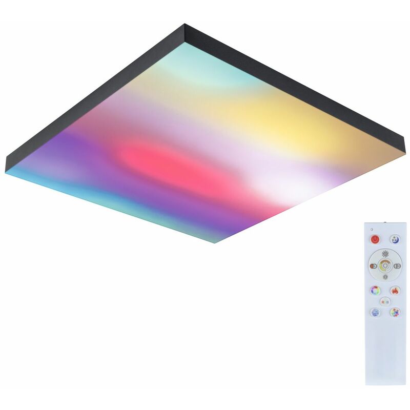 Pannello LED Velora Rainbow - Eckig 450x450mm 2110LM RGBW Nero Eccellente illuminazione della stanza e magia di colore puro Spettacolari effetti di illuminazione nel soggiorno - il pannello LED Velora Rainbow in nero di dimensioni 450x450mm collega l'eccellente illuminazione dello spazio con la magia di colore puro, poiché le migliori proprietà luminose con effetti dinamici sono state combinate nuovamente. La temperatura del colore è continuamente regolabile tramite telecomando di 3000 K caldo bianco a 6500 k luce bianca di luce diurna e supporta il bioritmo naturale. Il pannello LED stupisce anche con 16 animazioni preimpostate e controllo dinamico del colore, che sono possibili solo con luce piatta. Ogni scena luminosa può essere regolata a velocità o congelata come immagine fissa. Questo crea una superficie di illuminazione unica e individuale. Il pannello LED Velora Rainbow è infinitamente dimmerabile e ha una funzione di luce notturna integrata. La superficie della luce