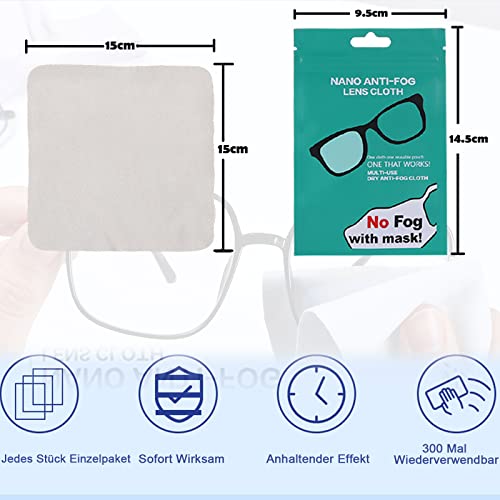 3 panni anti-appannamento per occhiali, 15 x 15 cm, che garantiscono un comfort ottimale durante ogni pulizia delle lenti. Materiale riutilizzabile fino a 200 applicazioni, che offre un effetto anti-appannamento tra 15 e 18 ore al giorno