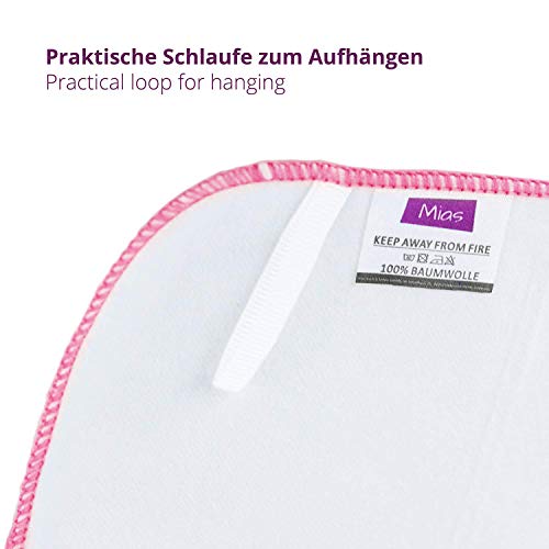 Mias 10 Panni per il bagnetto dei bambini in flanella Molton, bianco-rosa, in cotone, privi di sostanze dannose/Asciugamani per bambini/Salviette cosmetiche/Telo multiuso
