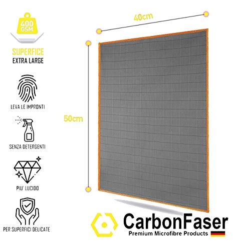 Kit con 3 PANNI CARBONFASER 50x40 cm in microfibra di carbonio adatto per vetri, specchi e tutte le superfici lisce.