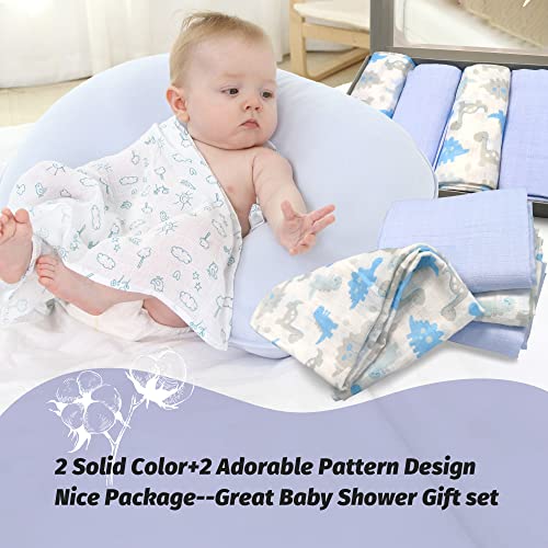 Panni in Mussola 100% Cotone 70 x 70 cm,Mussole Neonato Pacco da 4,Sicurezza certificata Oeko-Tex,Ideali come bavaglino, garza per pannolino o copertina per carrozzina o culla(Boy)