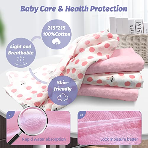 Panni in Mussola 100% Cotone 70 x 70 cm,Mussole Neonato Pacco da 4,Sicurezza certificata Oeko-Tex,Ideali come bavaglino, garza per pannolino o copertina per carrozzina o culla(Ragazze)