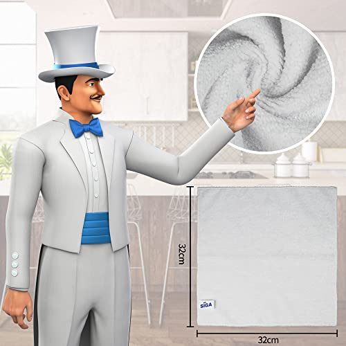 MR.SIGA Panni per la Pulizia in Microfibra, Panni Multiuso in Microfibra, Panni per la Pulizia Senza Striature, Confezione da 12, Bianco, Dimensioni 32 x 32 cm