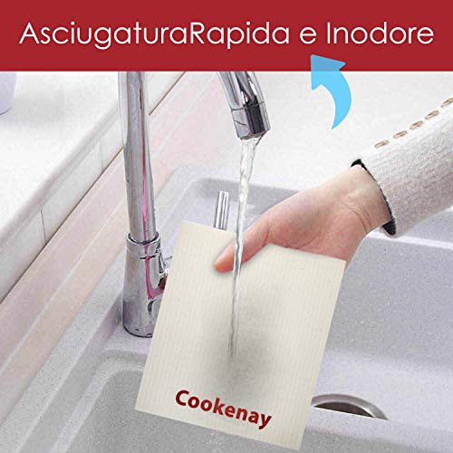 10 Panni Svedesi Pulizia Ecologici in Cellulosa e Cotone Strofinacci Cucina Cotone Stracci Cucina Canovacci Multiuso Spugnette Cucina Spugne per Piatti Spugna Panno Vetri Zero Waste Eco Friendly