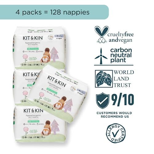 Kit & Kin Pannolini Ecologici Taglia 4 Ipoallergenici e Sostenibili (34 x 4 Confezioni, 136 Pannolini)