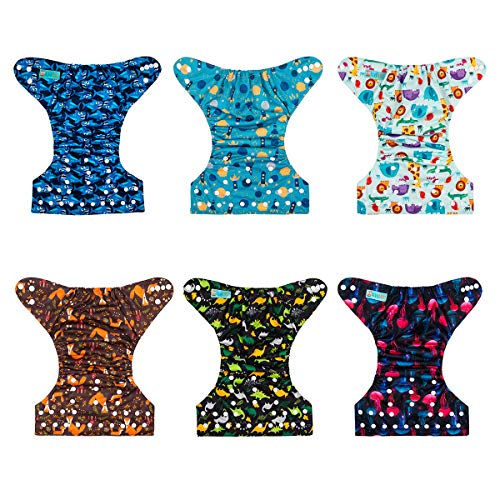 Misura unica, 3 pannolini con stampa + 3 pannolini con tasche, forniti con 2 inserti.